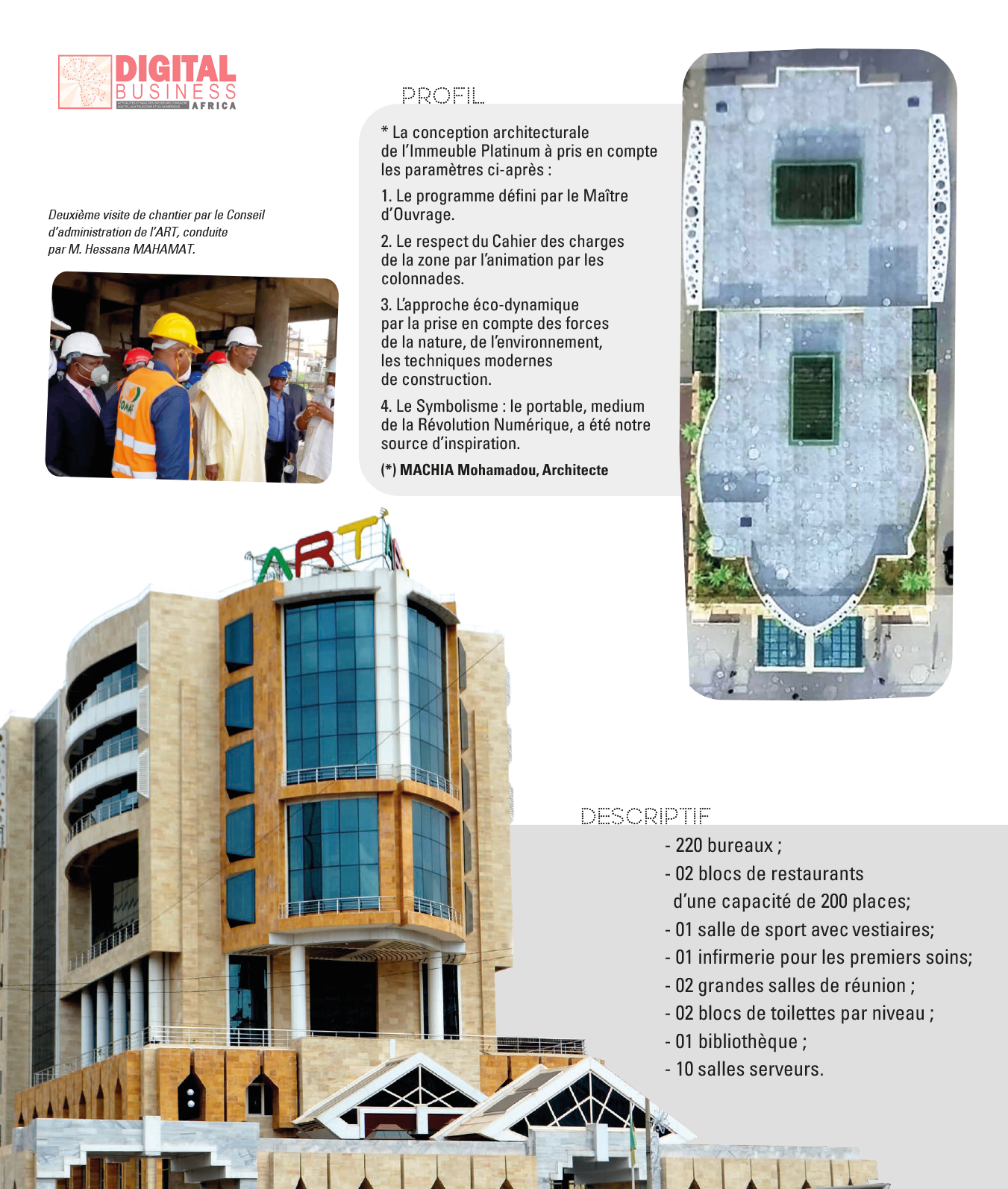 Plus qu’un espace de travail luisant de splendeur, l’immeuble Platinum est un espace de travail moderne, avec des outils de pointe et une technologie dernière génération. L’installation de la Direction Générale de l’ART dans ces locaux R+8 + 2 sous-sols parkings a permis à l’organe régulateur d’abriter et à consolider des projets technologiques visant la transformation numérique.