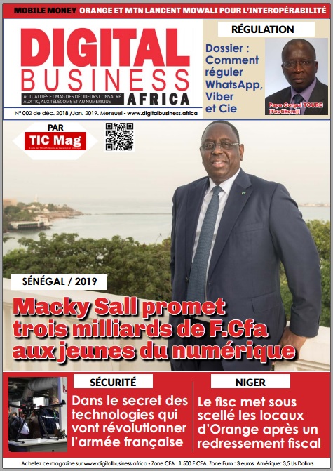 Bien évidemment comme indiqué en couverture, les contours des soutiens financiers que propose Macky Sall, le président sénégalais, au jeunes du secteur du numérique en 2019. Il promet de tripler à trois milliards de F.Cfa l’enveloppe consacrée aux start-up du numérique. C’était le 24 novembre 2018 alors que le président Macky Sall lançait officiellement les fonds de la deuxième Phase des financements de la DER (Délégation générale à entrepreneuriat rapide pour les femmes et les jeunes). Les raisons, contours et précisions sur cette promesse présidentielle dans cette édition de Digital Business Africa.