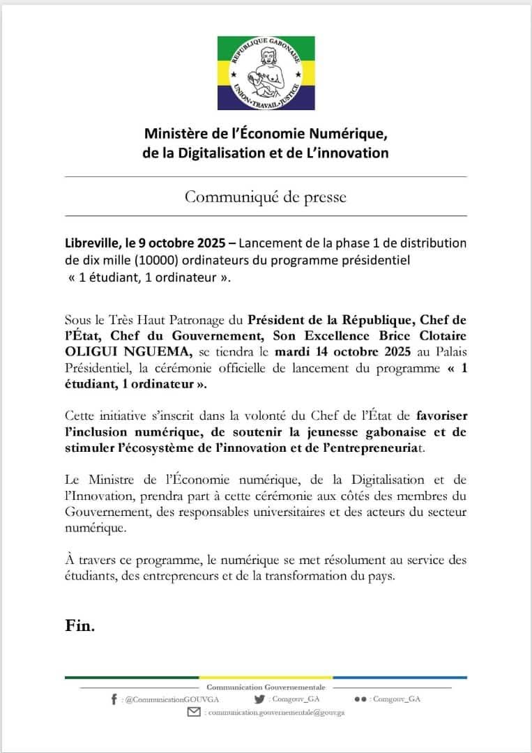 L’objectif affiché est clair : réduire la fracture numérique et offrir à la jeunesse gabonaise les outils nécessaires pour réussir dans un monde de plus en plus connecté. Ces ordinateurs seront distribués dans les principales universités du pays, avec une priorité accordée aux étudiants les plus méritants et issus de milieux modestes, a-t-on appris.